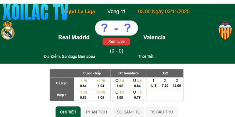 Chuyên gia từ Xoilac nhận định Real Madrid – Valencia vào lúc 03:00 ngày 02/11 sẽ là một trận cầu nảy lửa và đầy kịch tính. Với lợi thế sân nhà cùng phong độ ấn tượng, Real Madrid được dự đoán sẽ không gặp nhiều khó khăn để giành trọn 3 điểm trước một Valencia đang có phong độ bất ổn.