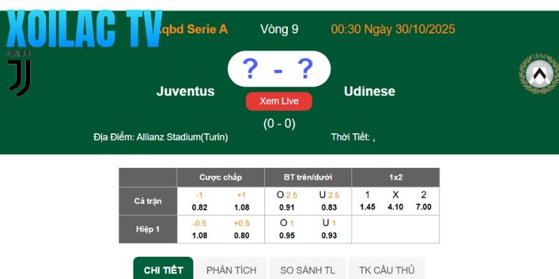 Xoilac dự đoán tỷ số Juventus – Udinese